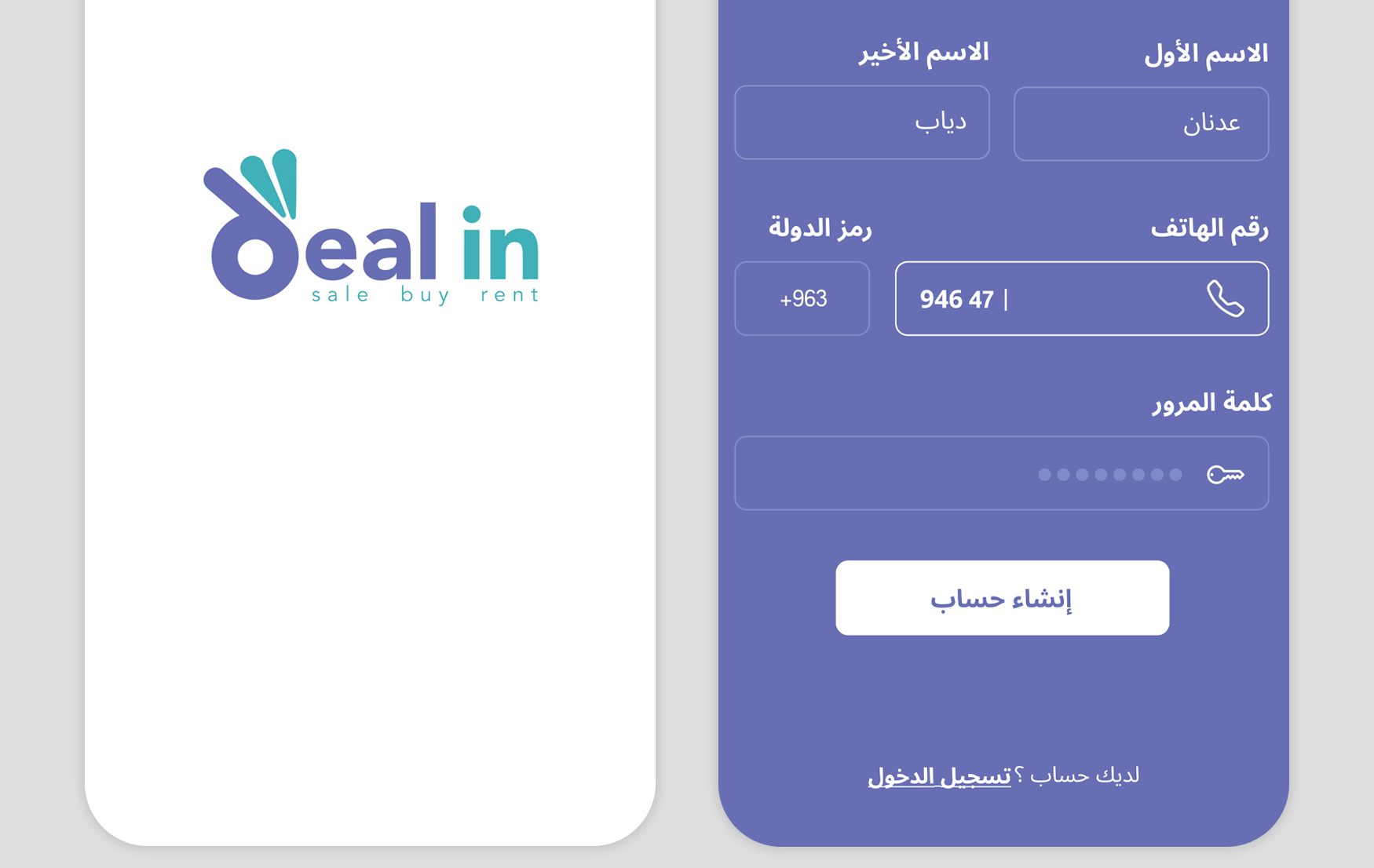 تصميم الهوية البصرية وواجهات تطبيق ديل إن المختص في بيع وشراء السيارات والبيوت